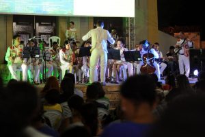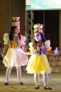 Crianças, adolescentes e jovens em uma noite memorável em frente a matriz de Nosso Senhor do Bom Fim.