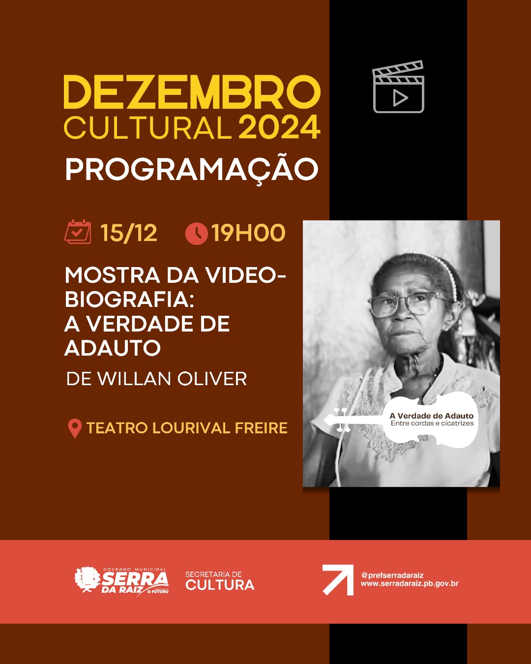 Às 19h, no Teatro Lourival Freire, teremos a exibição de mais duas produções locais: o documentário: O Massacre de Tracunhaém de Djè Silva e a vídeo biografia: A verdade de Adauto de Will Oliver.