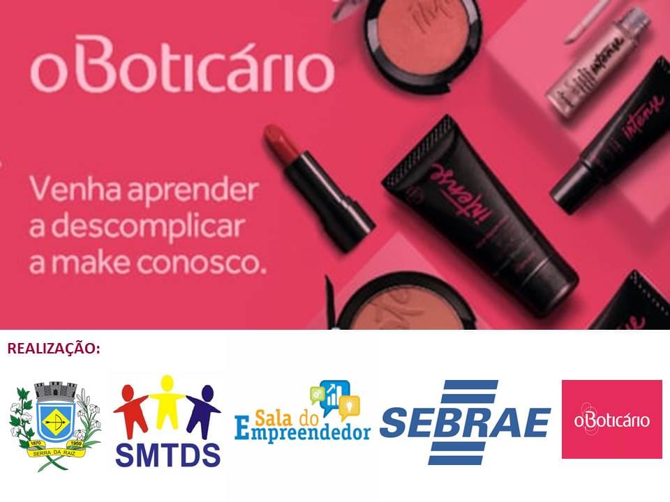 A Prefeitura Municipal de Serra da Raiz, através da Sala do Empreendedor e da Secretaria de Trabalho e Desenvolvimento Social irá realizar em parceria com o SEBRAE e o Boticário um curso básico de Maquiagem.