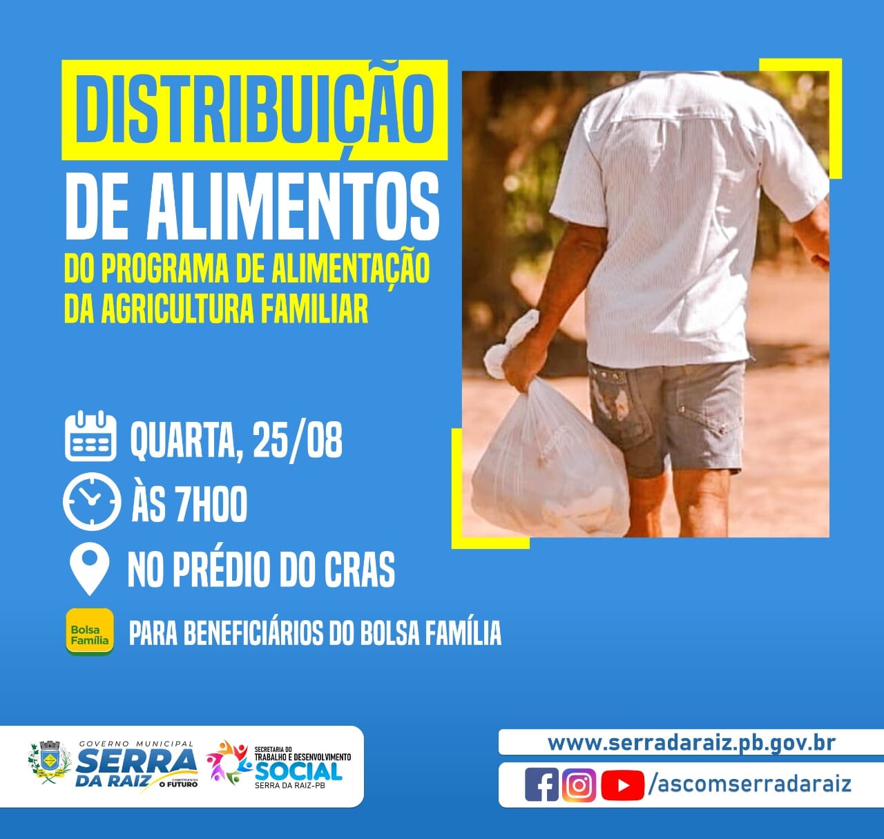 Em parceria com o governo do estado da Paraíba, a Secretaria do Trabalho e Desenvolvimento Social através do Programa de Aquisição de Alimentos irá distribuir 2 toneladas de inhame e batata doce para beneficiários do Bolsa família.