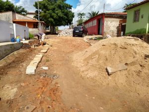 Está sendo feito o trabalho de esgotamento e calçamento, a equipe de trabalho está avançando na obra.