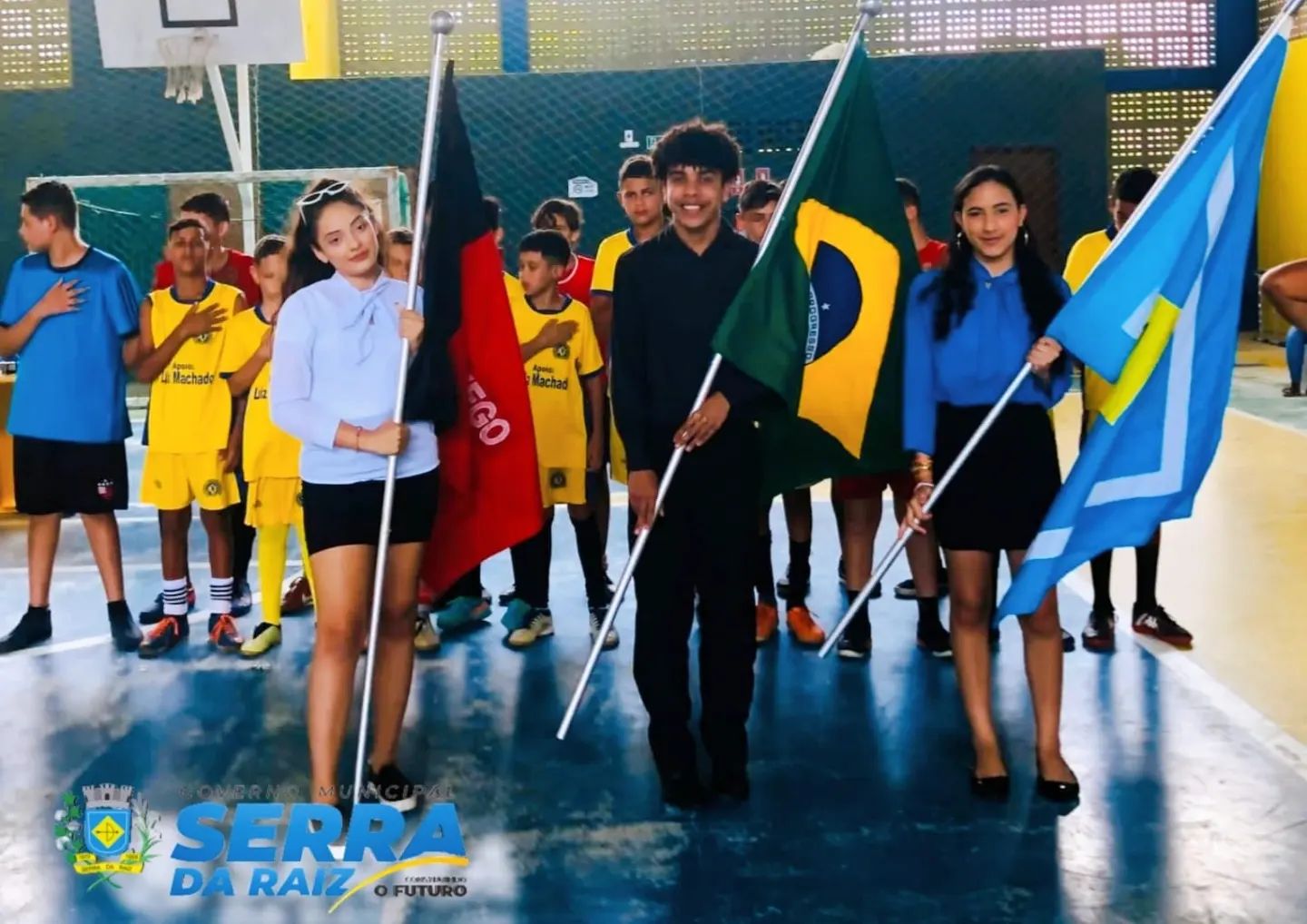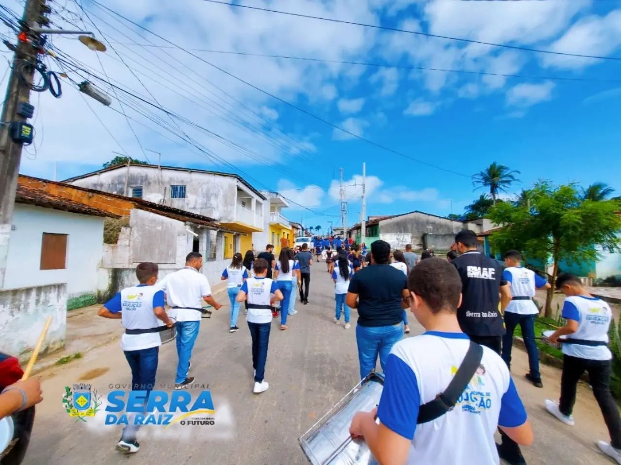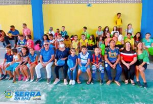 O prefeito Luiz Machado ao lado da primeira dama Josiene Cordula, esteve junto a equipe de educação realizando um dia de atividades em comemoração ao Dia do Estudante.