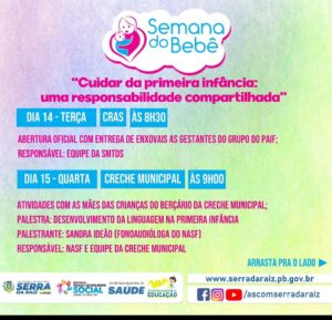 A gestão municipal através da Secretaria do Trabalho e Desenvolvimento Social realiza de e 13 a 17 de setembro a Semana do Bebê.
