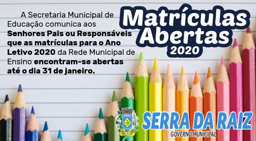 A secretaria Municipal de Educação lembra aos pais e responsáveis que as matrículas da rede Municipal estão abertas em todas as unidades escolares.