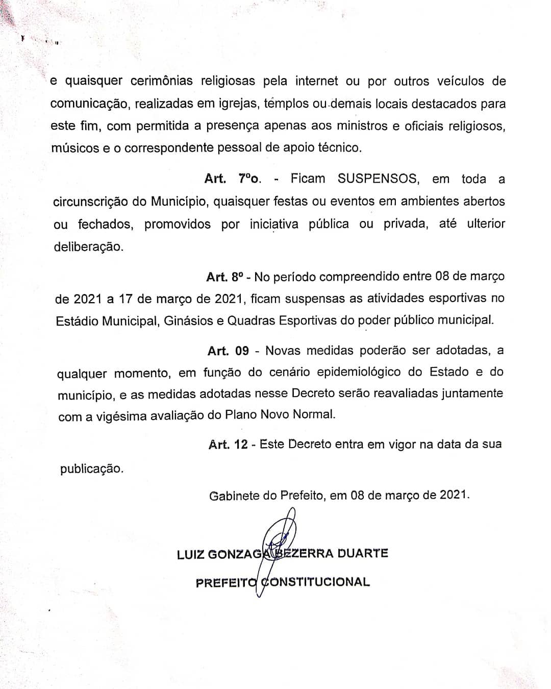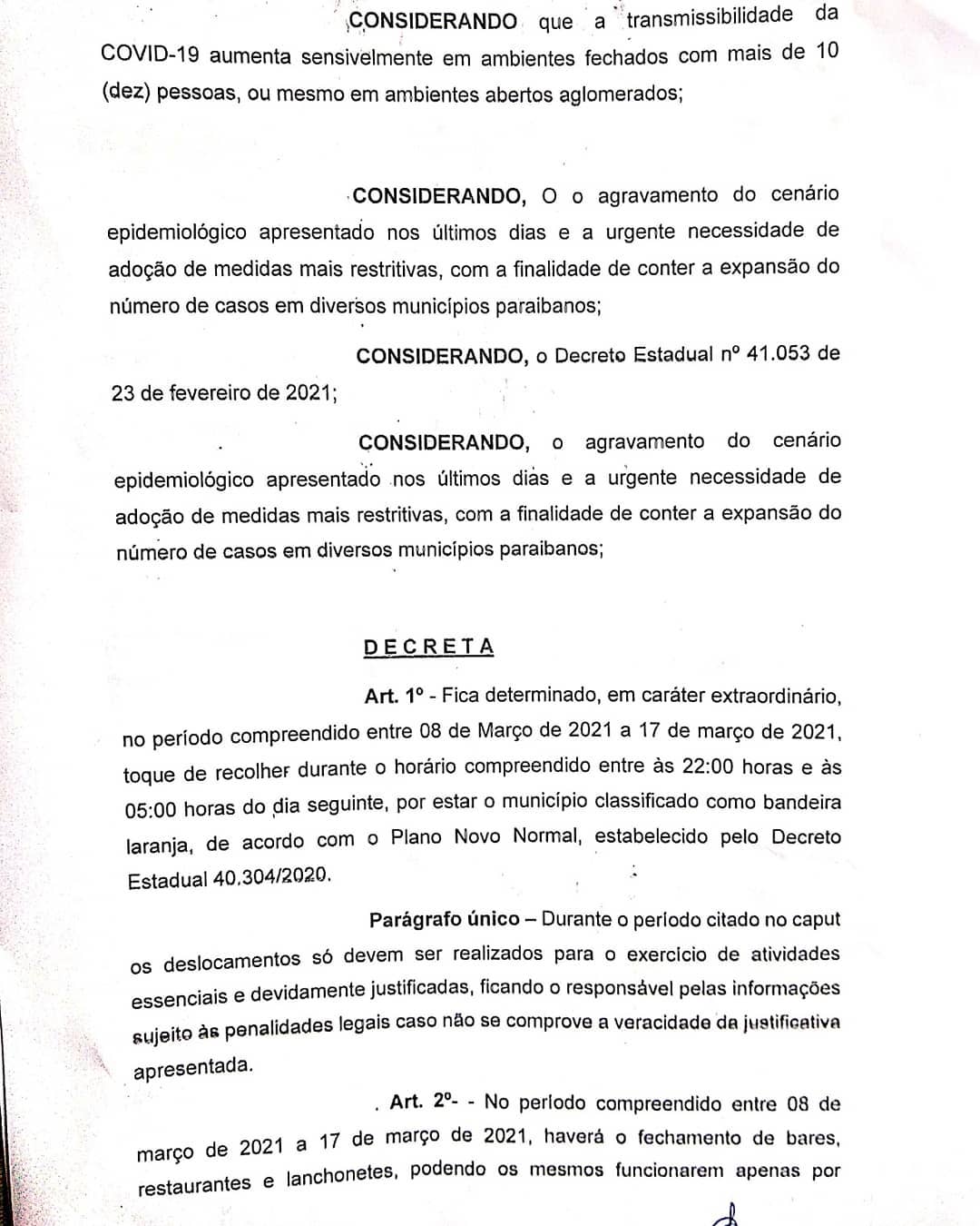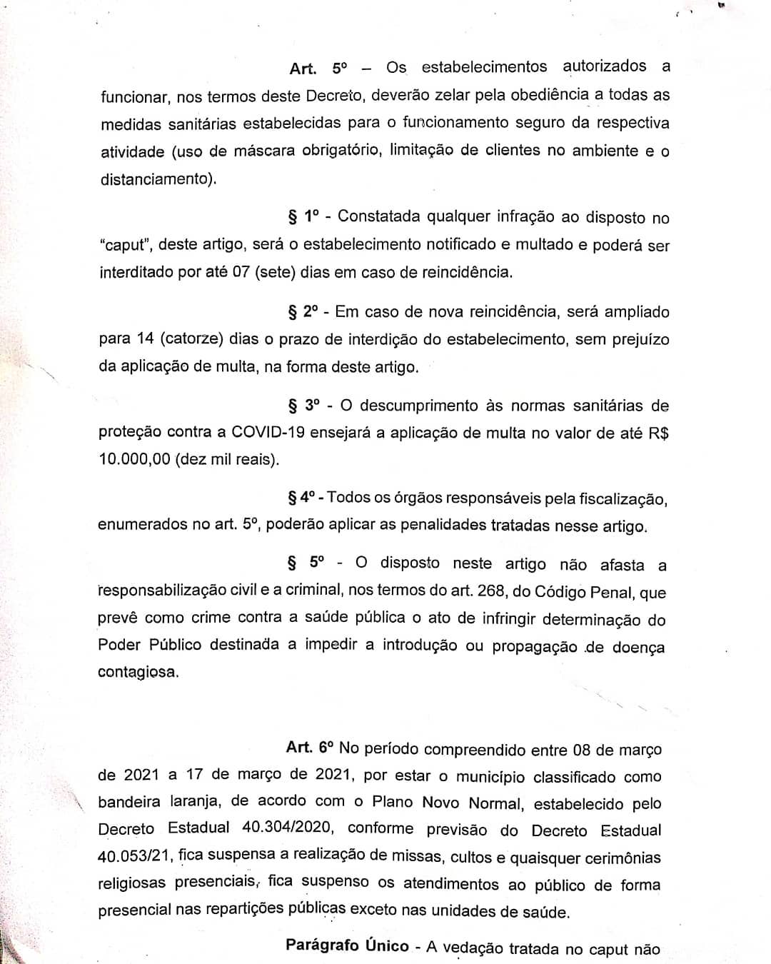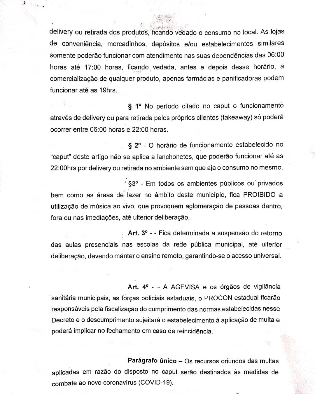 - O comércio de forma em geral deverá fechar as 17hrs, exceto farmácia e padaria que podem ficar até às 19hrs.