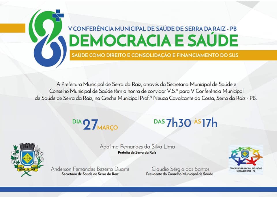 A gestão municipal através da Secretaria de Saúde irá realizar no dia 27 de Março a V Conferencia Municipal de Saúde.