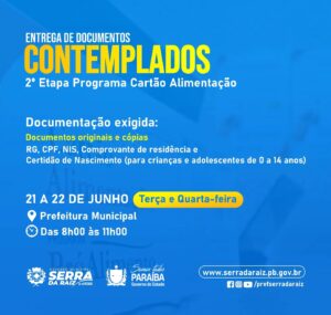 O Governo do Estado através da Secretaria de Desenvolvimento Humano divulgou a planilha com os nomes das pessoas que tiveram as inscrições deferidas após realizarem a inscrição para a primeira etapa do Programa Cartão Alimentação referente ao Município de Serra da Raiz, considerando os critérios estabelecidos pela Lei Estadual Nº 12.166, de 20 de dezembro de 2021, em consonância com a portaria n° 076/22, com filtros realizados através das informações contidas no Cadastro Único do Governo Federal.