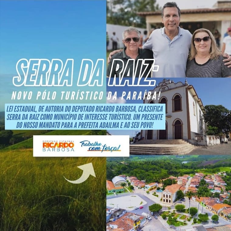 Uma notícia importante para nosso município, o deputado Ricardo Barbosa anunciou que Serra da Raíz está através de lei sancionada pelo governo do estado, oficialmente no roteiro dos municípios de Interesse Turístico do Estado.
