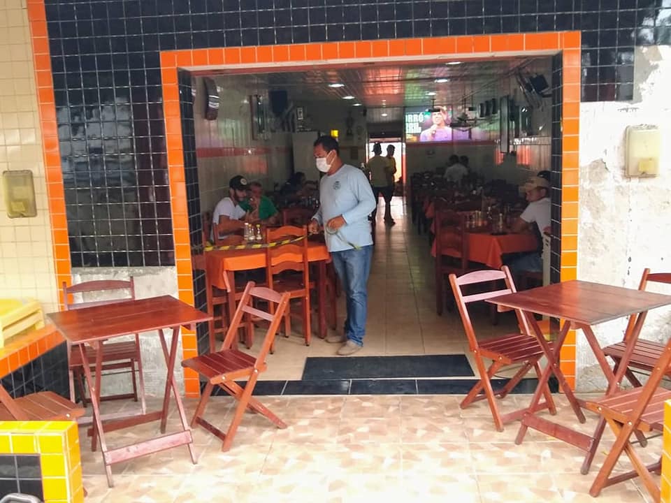 A equipe de vigilância sanitária está em campo visitando os bares para verificar o decreto que determina uma capacidade de 30% no ambiente para atender os clientes.
