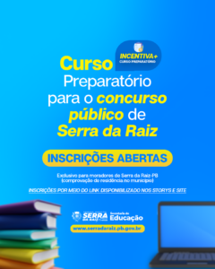A Prefeitura Municipal de Serra da Raíz, através de uma parceria voluntária com os professores Abraão Irineu (matemática) e Janaína Mandu (português), estará ofertando cursinho preparatório para o concurso público que irá acontecer no município.