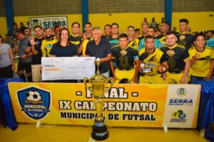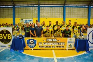 O 9° Campeonato Municipal de Futsal realizado pela Secretaria de Esportes teve seu encerramento no domingo (01), consagrando como campeã a equipe do Borrusia, vice o Schalk e em terceiro lugar o Bayern.