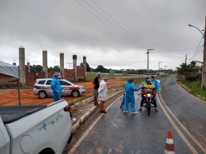 Gestão realiza barreira sanitária para desinfectar carros e orientar sobre a prevenção à Covid-19