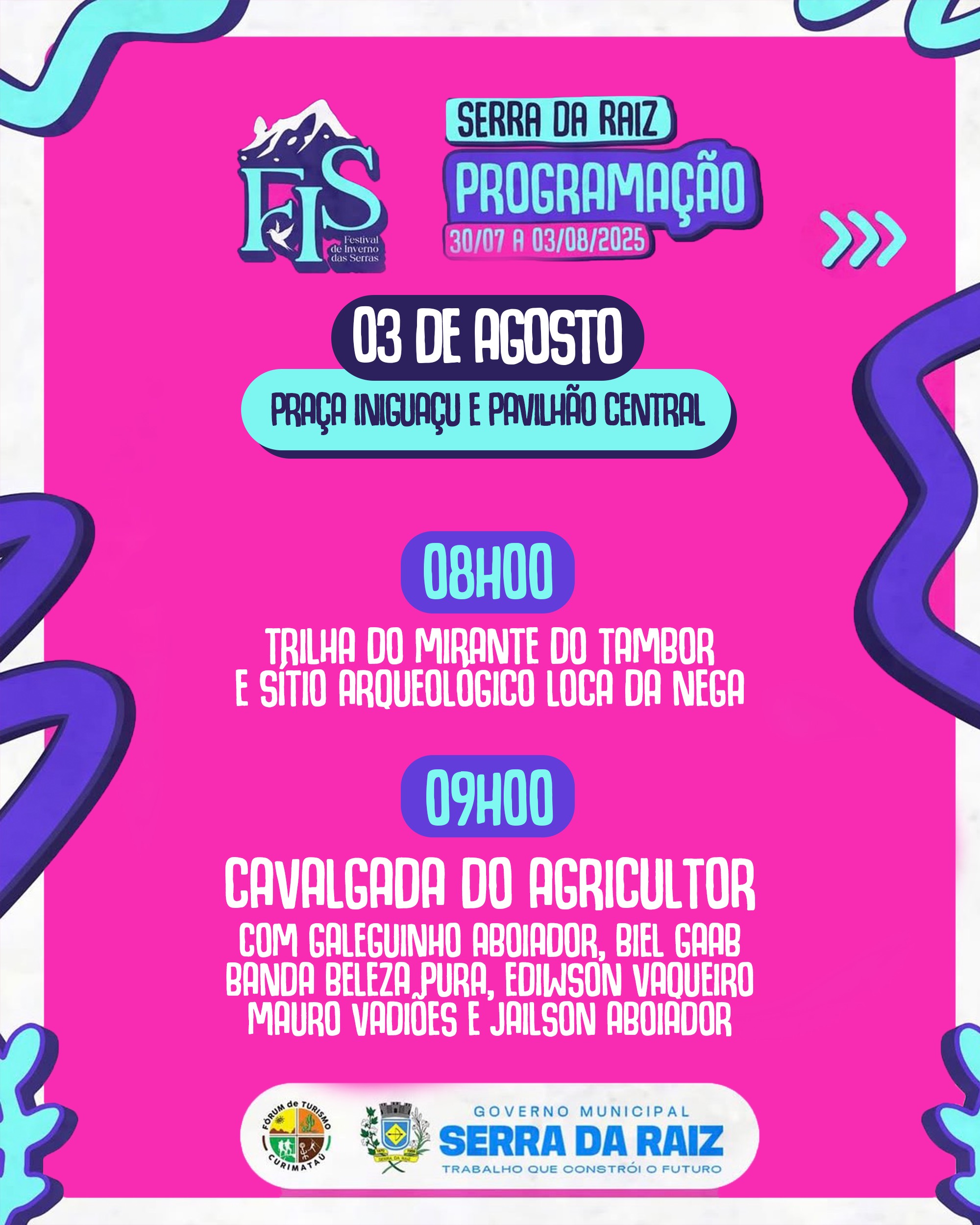 A gestão municipal por meio das secretarias de Turismo e Cultura, realiza de 30 de julho a 03 de agosto o FIS (Festival de Inverno de Serra da Raiz), um roteiro que vai levar a boa culinária, arte, música, cultura e muito mais.