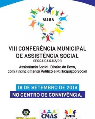 A Prefeitura Municipal de Serra da Raiz, juntamente com o Conselho Municipal de Assistência Social realizará a VIII Conferência Municipal de Assistência Social, com o tema “Assistência Social: Direito do Povo, com Financiamento Público e Participação Social”.