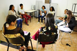 Professores, profissionais da saúde, profissionais da assistência social discutindo políticas públicas para crianças e adolescentes.