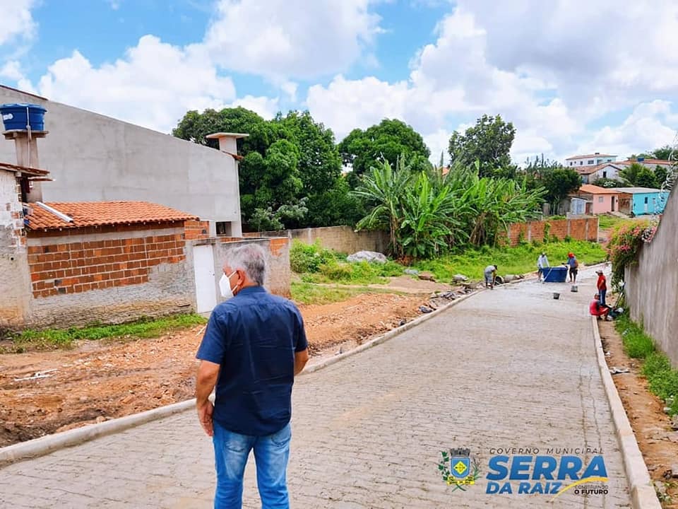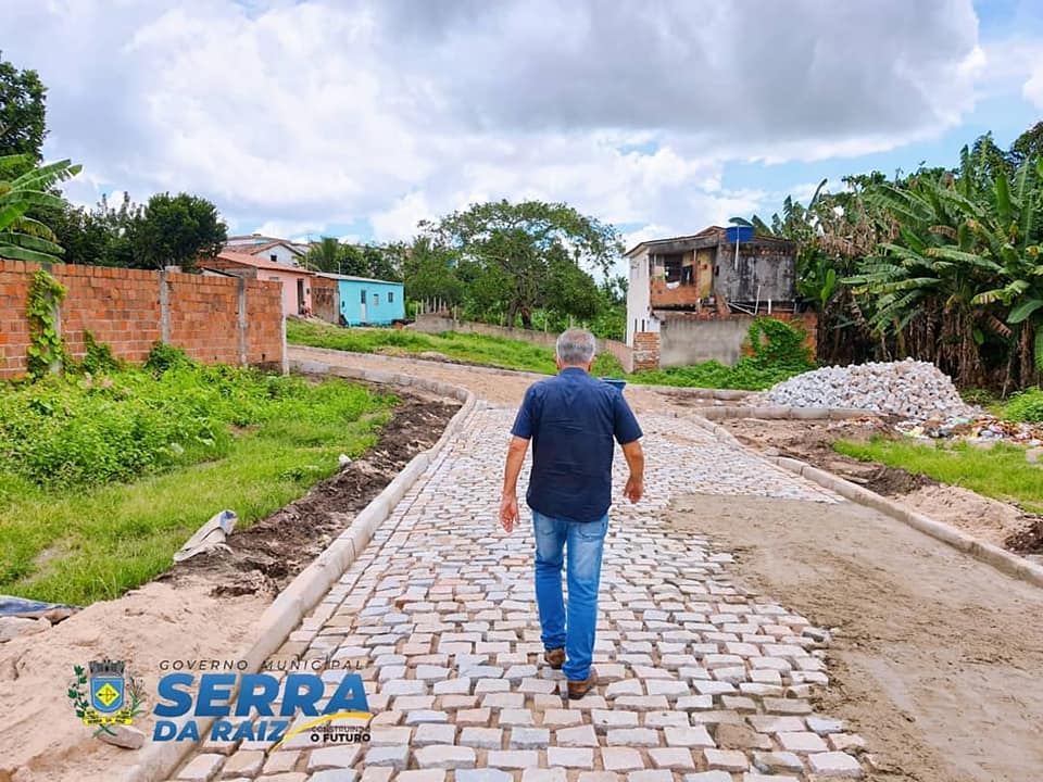 O prefeito Luiz Machado esteve na manhã desta sexta-feira (07) visitando a obra do calçamento de acesso entre as ruas Bento José da Costa e a Capitão Cazumbeu.