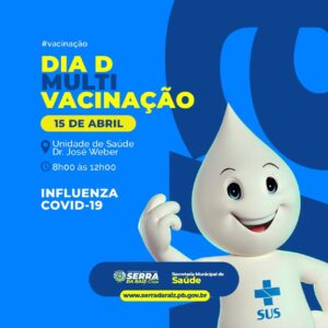 A Secretaria Municipal de Saúde informa que estará realizando mais um dia D no próximo sábado 15/04 , com a multivacinação para crianças, adolescentes e adultos, e também contra a COVID-19 para todas as idades.