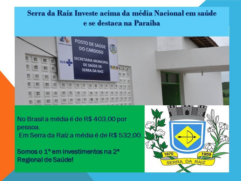 De acordo com o estudo a média nacional de investimentos por pessoa é de R$ 403,00, o município de Serra da Raíz aparece com investimentos de R$ 532,33 por pessoa, se destaca como um dos 59 na Paraíba que investem acima da média e o primeiro em investimento na 2ª Regional de saúde.