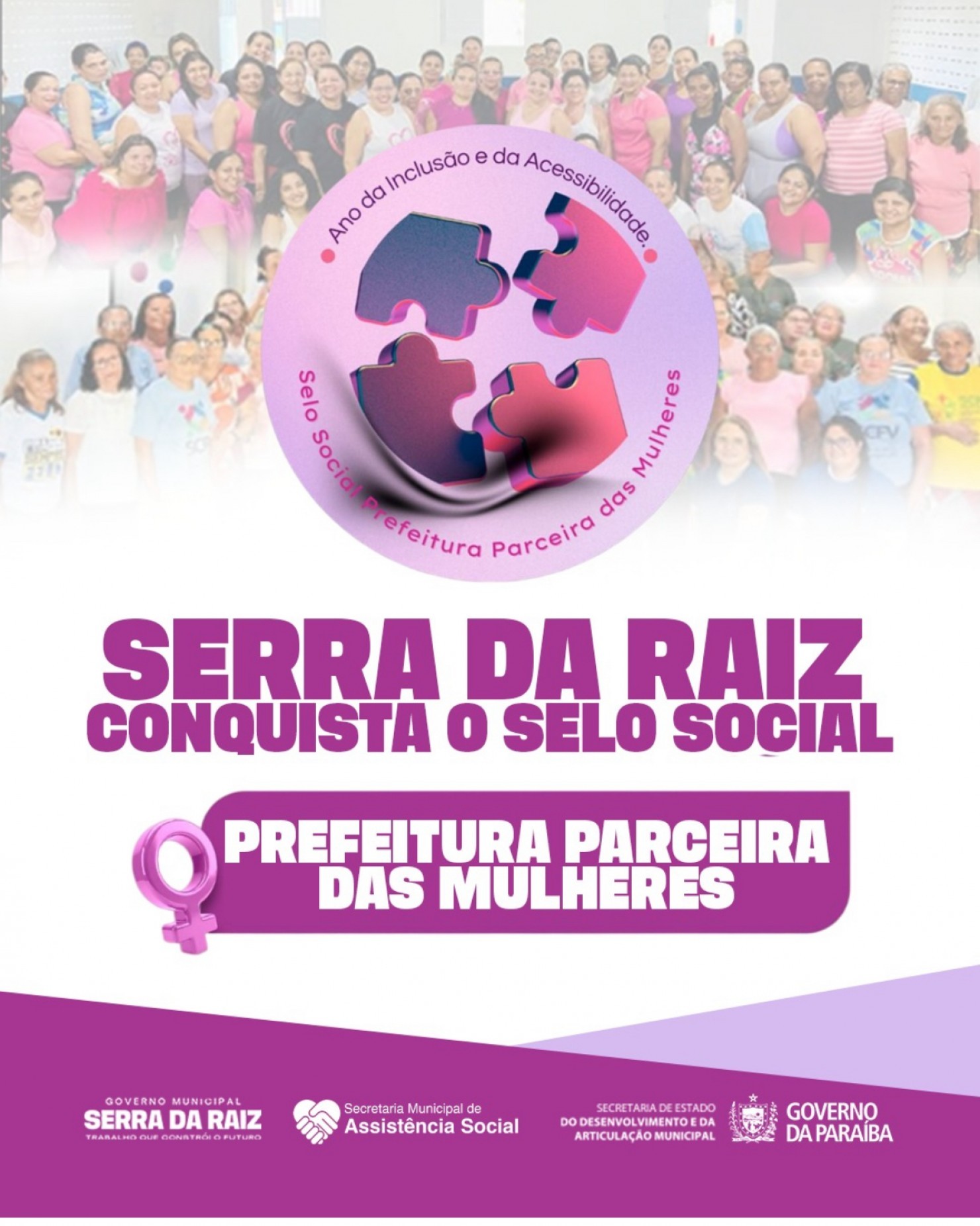 Recebemos o Selo Social Prefeitura Parceira das Mulheres – Ano da Inclusão e da Acessibilidade, um reconhecimento concedido pelo Governo do Estado às prefeituras que desenvolvem e fortalecem políticas públicas voltadas para as mulheres.