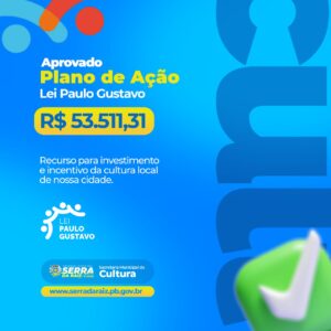 Ótima notícia para os artistas e fazedores de cultura do município, o Plano de Ação da Lei Paulo Gustavo elaborado pela Gestão Municipal através da Secretaria de Cultura foi aprovado pelo Ministério da Cultura.
