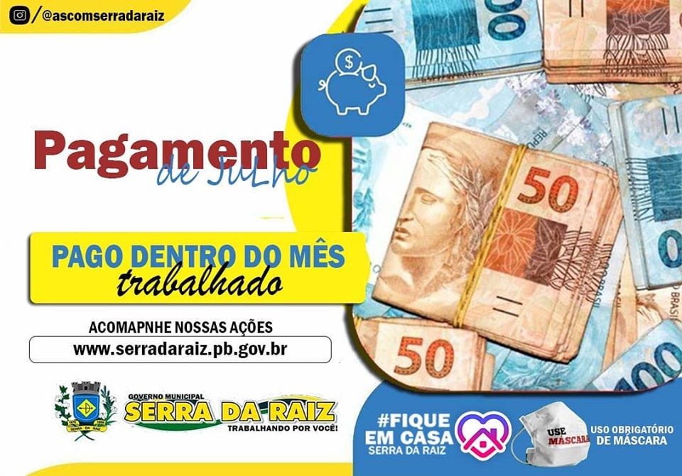 A gestão municipal informa que o pagamento dos servidores municipais referente ao mês de Julho já está em conta.