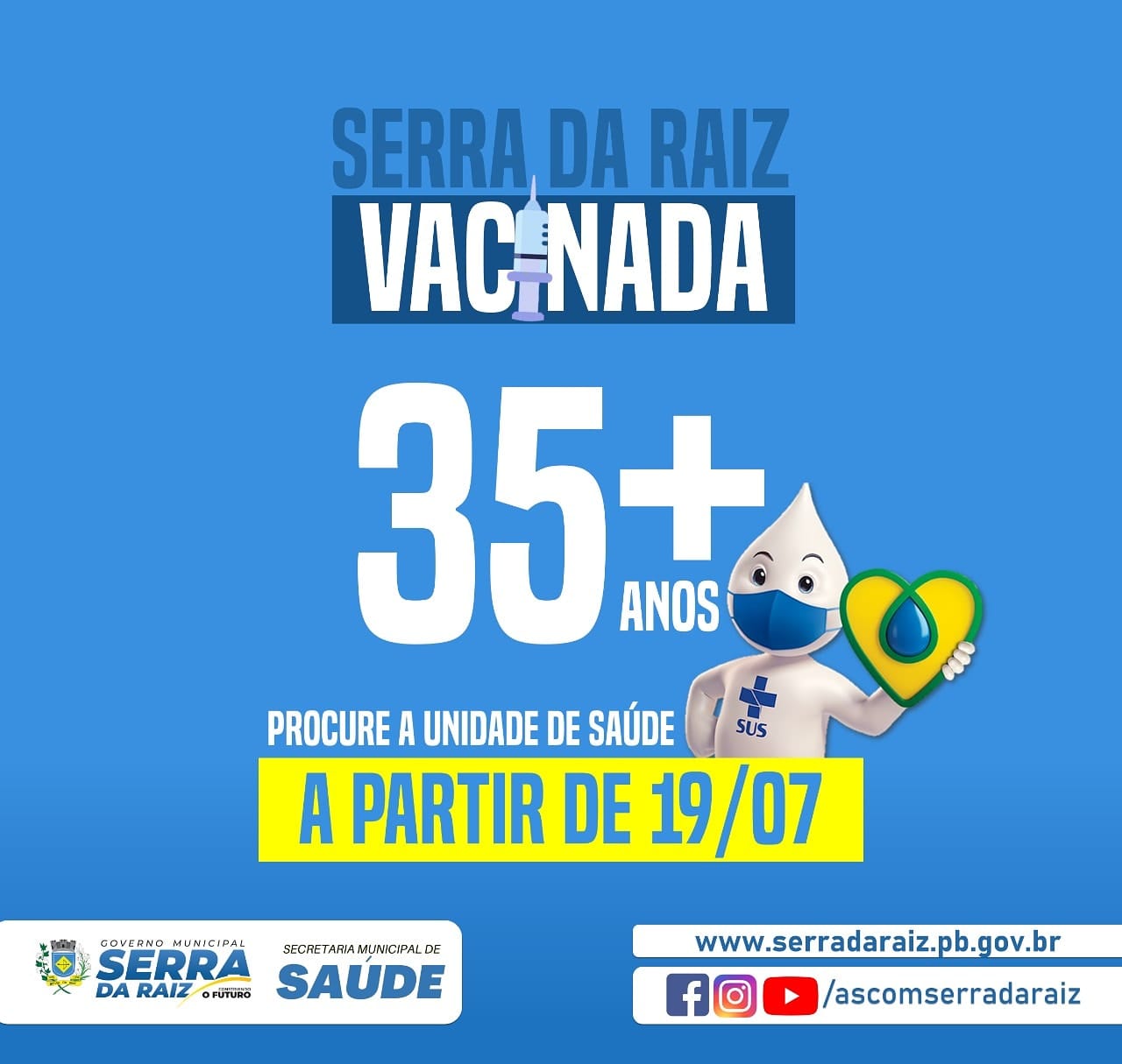 Recebemos no último sábado mais uma remessa de vacina para avançarmos na Imunização em nossa Cidade, fique atento ao Calendário de VACINAÇÃO e a programação para você que já tem 35 anos e +.