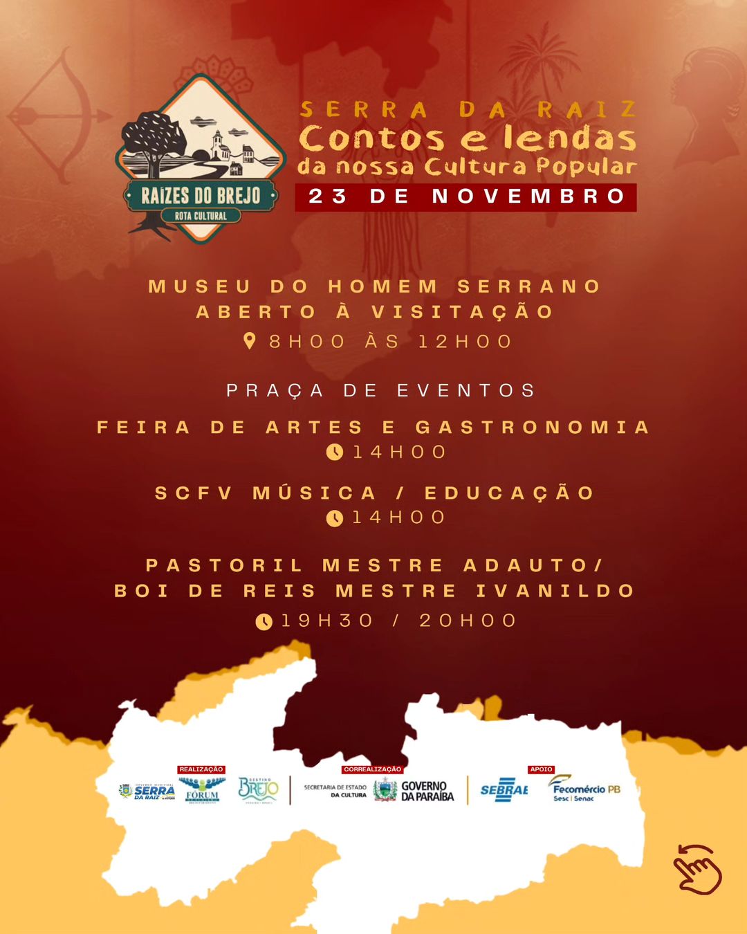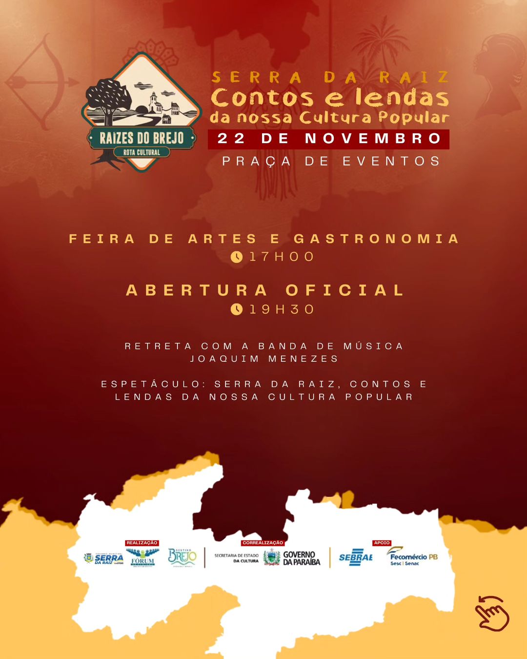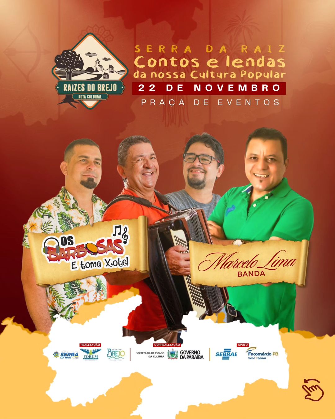 A gestão municipal através das secretarias de Turismo e Cultura, realizará de 22 a 24 de novembro mais uma edição do Raízes do Brejo.